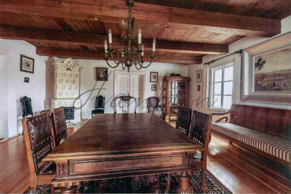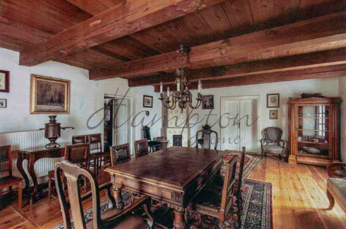 Mamy przyjemność zaoferować do sprzedaży unikatowy Dwór modrzewiowy.Dwór drewniany o konstrukcji zrębowej i oszalowany, parterowy, z wysokim poddaszem przykrytym dachem czterospadowym kryty wiórem osikowym. Elewacja frontowa z pozornym boniowaniem 7 osiowa, z opaskami okiennymi, czterokolumnowym, toskańskim portykiem, piętro zwieńczone trójkątnym szczytem, o pozornym boniowaniu narożnym.
